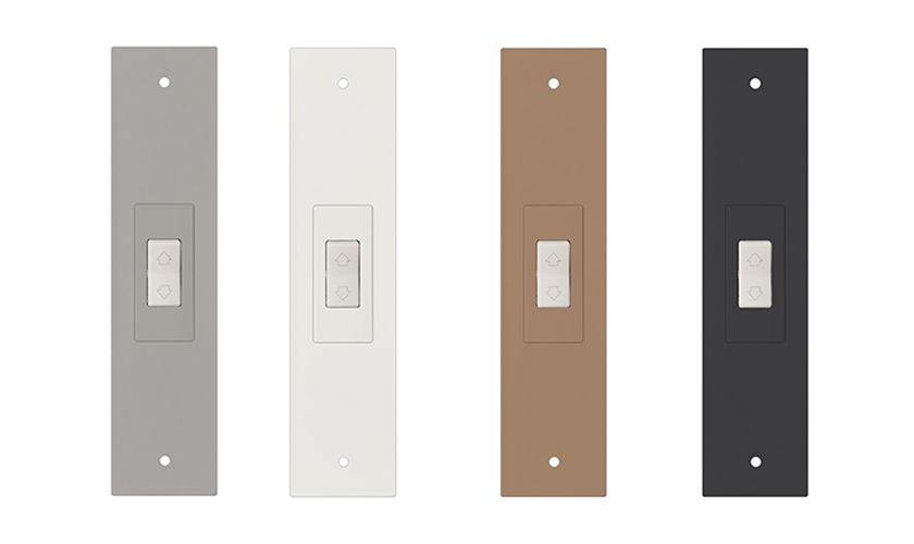4 differenti possibilità di colorazione della placca avvolgitore per integrarla alla perfezione con l'estetica dell'ambiente per mantenere un design elegante e discreto, in totale sintonia con i colori della stanza.